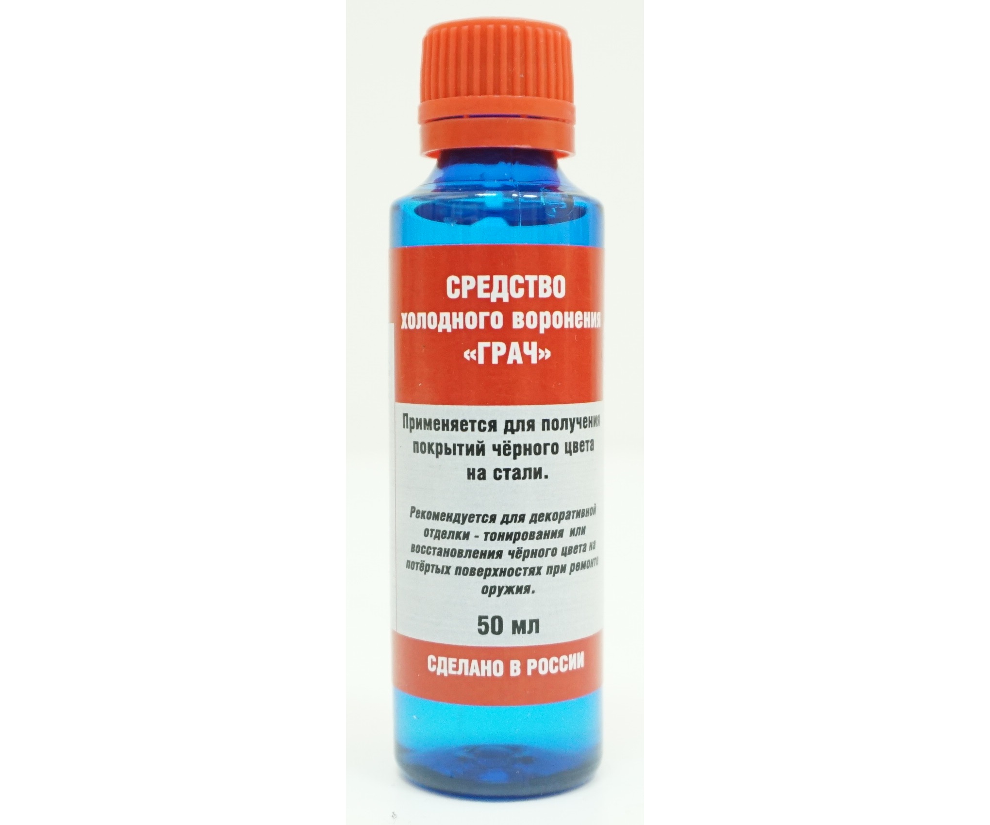 Средство холодного воронения «Грач» 50 мл применяется для получения покрытий черного цвета на стали, серебре, меди, никеле и их сплавах при комнатных температурах.