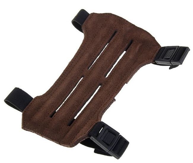 Крага из натуральной замши с ребрами жесткости. Защищает предплечье. Для ношения при стрельбе из блочных луков. Крепится на карабинах.