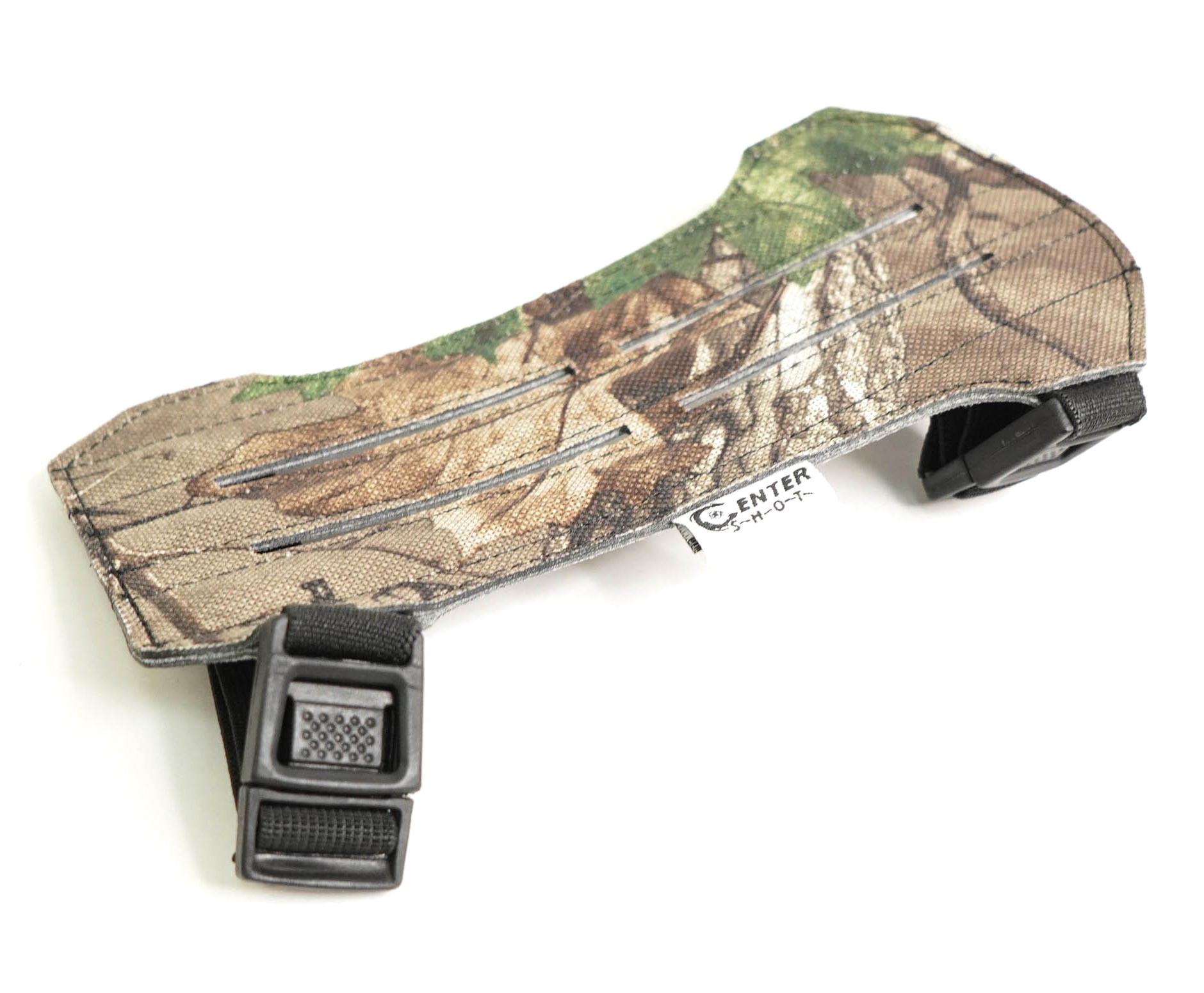 Крага из натуральной камуфлированной замши с ребрами жесткости. Защищает предплечье. Для ношения при стрельбе из блочных луков. Крепится на карабинах.