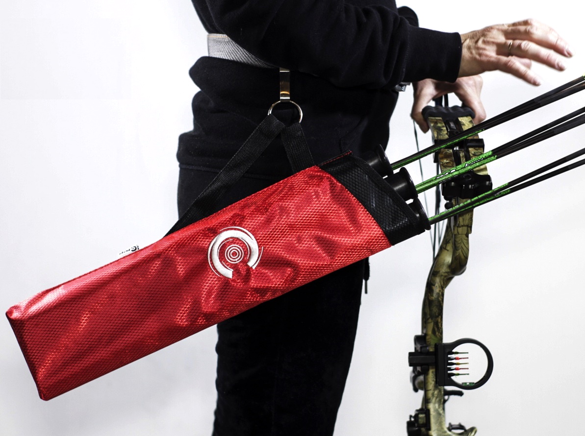 Колчан поясной Basic красного цвета – оригинальный аксессуар для переноски и хранения стрел, комфортная и модная модель с тремя пластмассовыми блоками для стрел и карманами для аксессуаров.