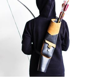 Колчан – оригинальный аксессуар для переноски и хранения стрел. Заспинный колчан, произведенный из натуральной кожи - один из лучших видов аксессуаров для каждого, независимо от изначального уровня его подготовки, охотника. Среди козырей данного аксессуара можно также назвать и небольшой размер, и вполне стильное дизайнерское решение элемента со специальными замшевыми вставками.
