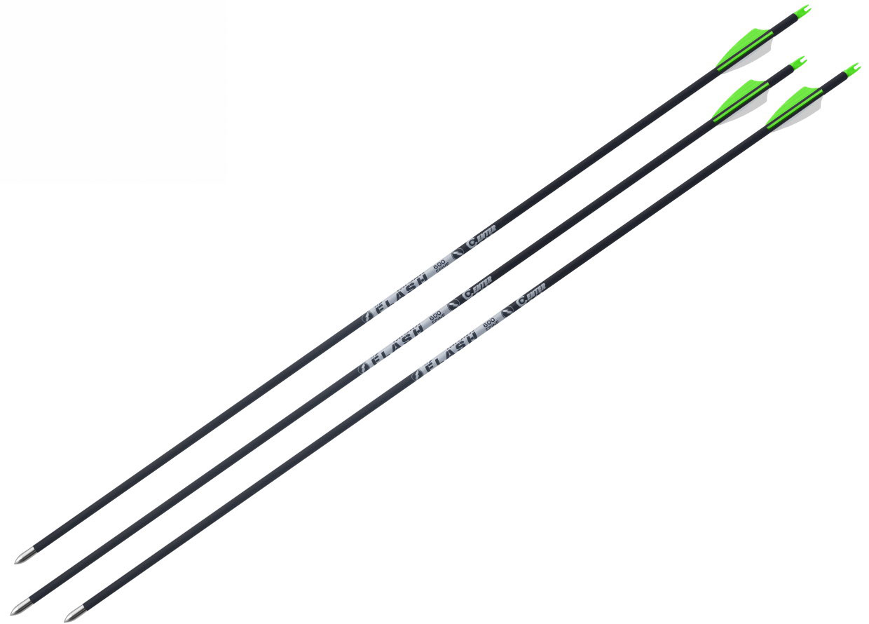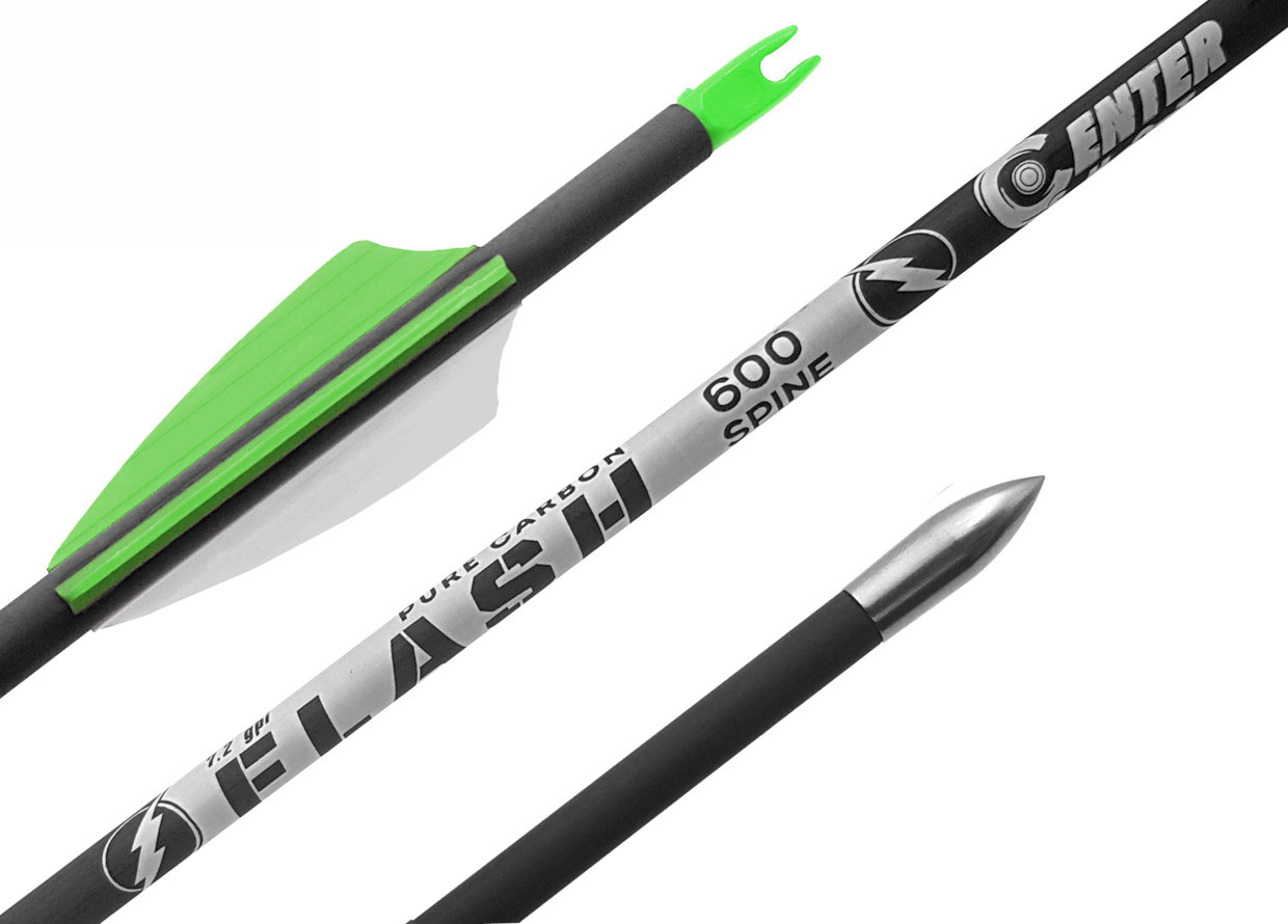 Centershot Flash тонкие спортивные стрелы соревновательного уровня из 100% карбона. Прямизна (straightness) составляет не более 0.006 дюйма от идеальной прямой, что позволяет лучнику быть уверенным в стабильности и кучности своей стрельбы. Стрелы оснащены высококачественными компонентами: никелированными спортивными наконечниками, рифленым скоростным оперением и хвостовиками. Опционально стрелы можно комплектовать спортивными хвостовиками, устанавливаемыми на алюминиевые пины. Все дополнительные компоненты есть в продаже. Линейка спайна (жесткости) варьируется от 350 до 1500, что позволит подобрать стрелу под любую растяжку и силу натяжения. Для удобства различия стрел по спайну, каждый вид стрел оснащается своим цветом оперения и хвостовика. Наконечники в трубку не вклеены.