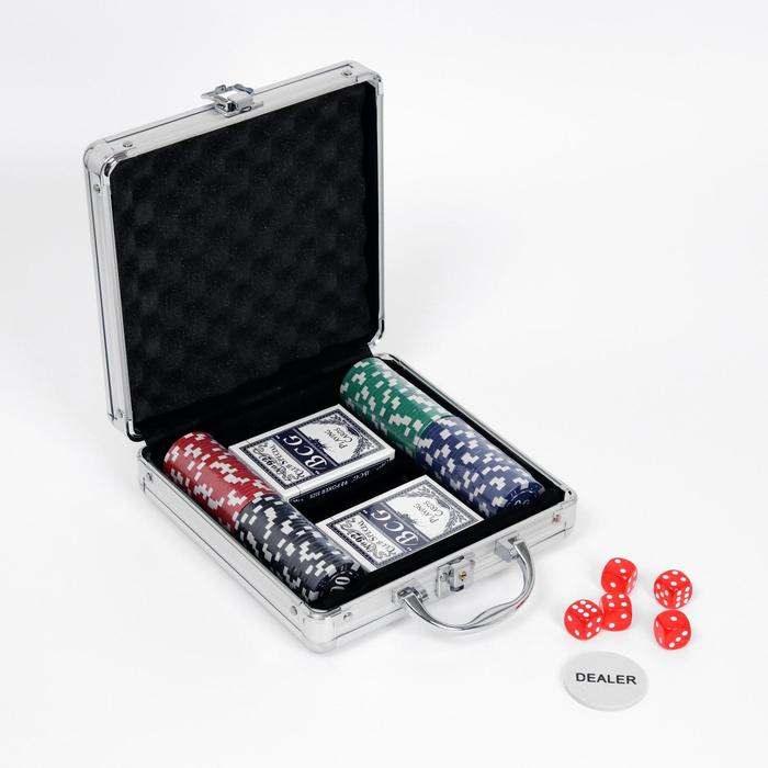 Набор в металлическом кейсе прекрасно подойдет для небольшой компании. Такой кейс удобно брать с собой — на вечеринку, на дачу, на пикник, в гости. Он закрывается на ключ, а значит, ни одна фишка из игры не потеряется в дороге. Пластиковые карты, фишки и внушительного вида кейс придают игре особую атмосферу.